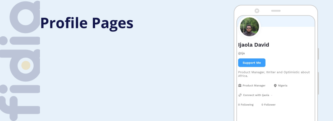 Much like a website, as a creator using Fidia, you get a profile page where people can easily support your work and you can also display some of your work especially if you are a creator who produces some digital artefact.